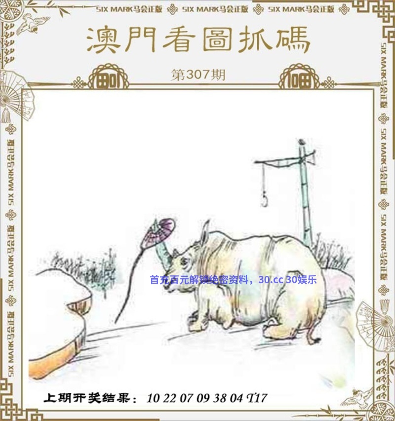 307期:【广西团队协手破解抓码图】【开狗20】 破解图文:一头犀牛站着,角上顶着一把伞,旁边有木杆和草丛。 综合九肖:牛虎蛇猴马兔狗羊龙 综合十码:05.41.28.13.34.12.39.20.23.26 |